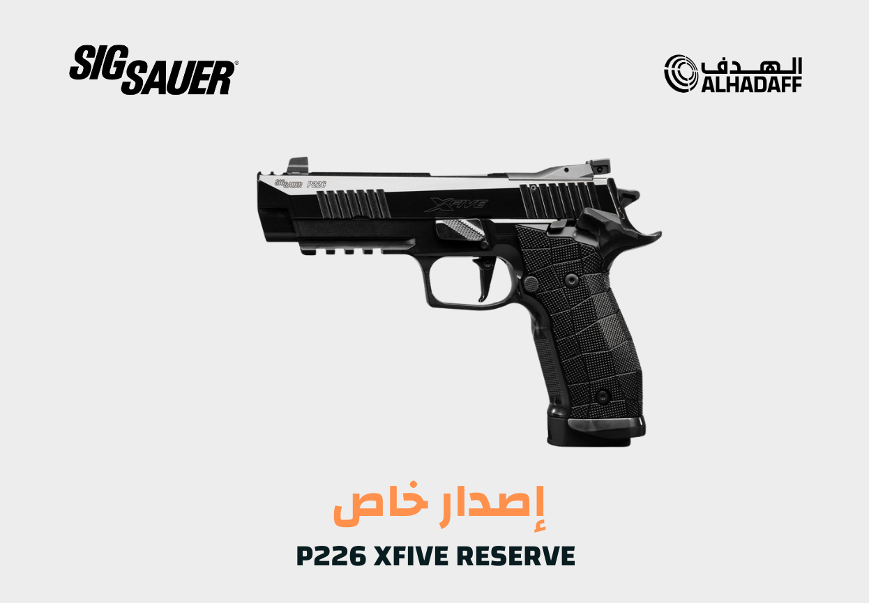 مسدس رياضي فاخر من الفئة العليا، يمثل قمة ما وصلت إليه منصة P226 من دقة وتشطيب وأداء. تم تصنيع XFive Reserve بمعايير دقيقة وبأجزاء مختارة بعناية، مع توازن مثالي ووزن محسوب يمنح الرامي ثباتاً استثنائياً وتحكماً عالياً في الرمي السريع والدقيق. خيار النخبة للرماية الرياضية والمنافسات الراقية.